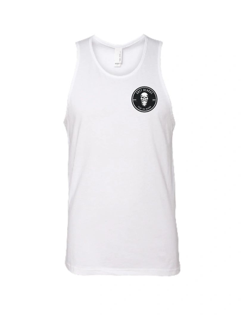 The Grey Beards Fear the Beard Tank Top keeps it simple and keeps it real. Our circular skull crest with “Fear the Beard” and “ESTD 2023” sits on the front — clean, bold, and unmistakable. Cut from 100% cotton Next Level fabric for a fit that breathes when the temperature rises. White on black crest, no distractions. The kind of Grey Beards shirt you throw on when the sun’s out and the attitude’s up.